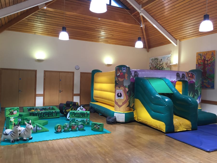 Hire the jungle soft play with a jungle themed castle combi slide as a soft play hire package at Cheltenham Bouncy Castles, Gloucestershire.