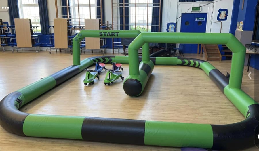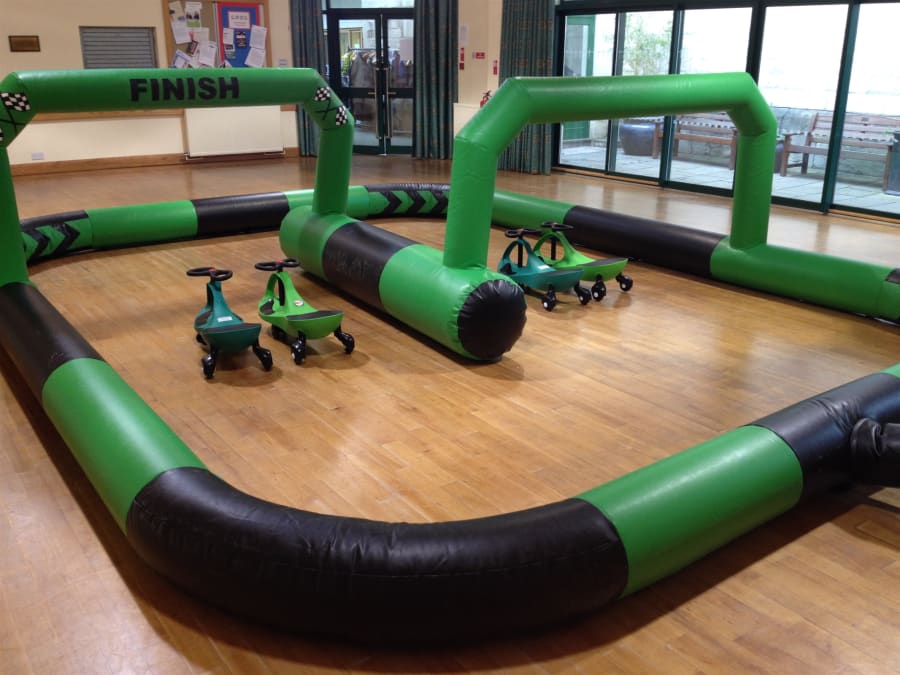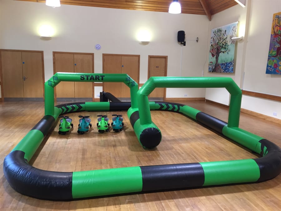 Why not add the didi car race track onto your indoor bouncy castle hire, discounts are available when booking a bouncy castle as well as the didi car grand prix race track. Contact us today on 01242 235273 or drop us an email for further details.