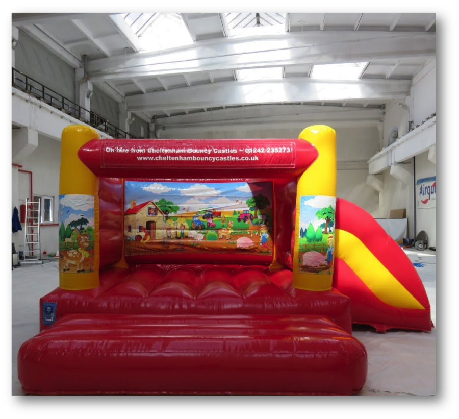 Farm yard bouncy castle hire in Cheltenham, Stroud, Cirencester, Andoversford, Bouton on the Water and surrounding Gloucestershire areas.