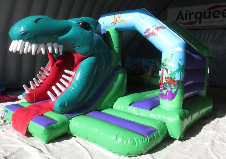Take a look at what has arrived to the bouncy castle combi hire fleet – this gigantic looking 3D dinosaur head shaped castle combi slide.