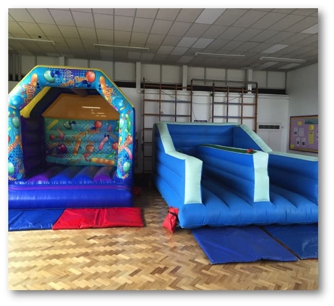 INSIDE HIRES -Indoor bouncy castles including the junior bungee run will come with sand bag weights for extra safety.
