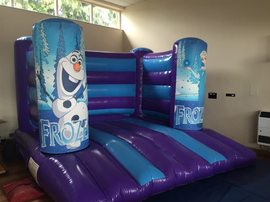 - This frozen bouncy castle is ideal for inside halls and venues with a height restriction as it is only 8ft tall and is also perfect for outside on a flat grassed area. Side access is also necessary for outside private garden hires.