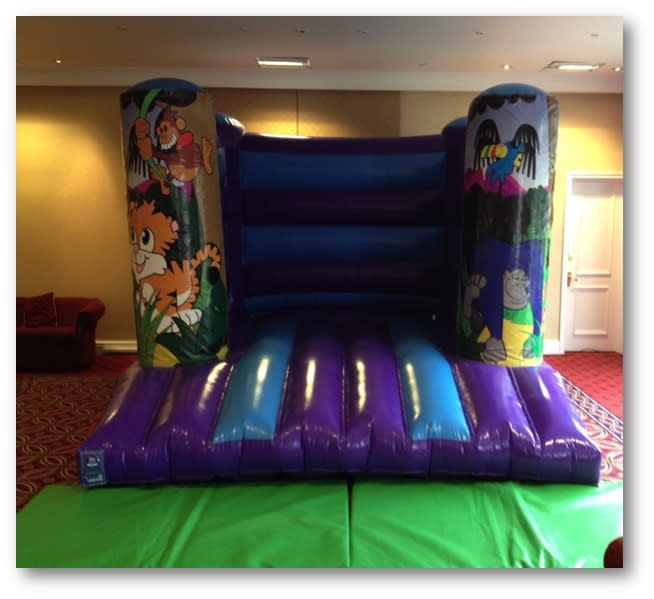 Jungle themed bouncy castle hire. The jungle themed bouncy castle is always a popular bouncy castle hire choice as the themed is suited to both boys and girls. Your little monkeys are sure to go wild on this fantastically themed jungle bouncy castle so why not get the jungle themed bouncy castle party in full swing and hire this jungle bouncy castle from Gloucestershire's bouncy castle hire company All about fun uk.com ~ the party and event hire company.