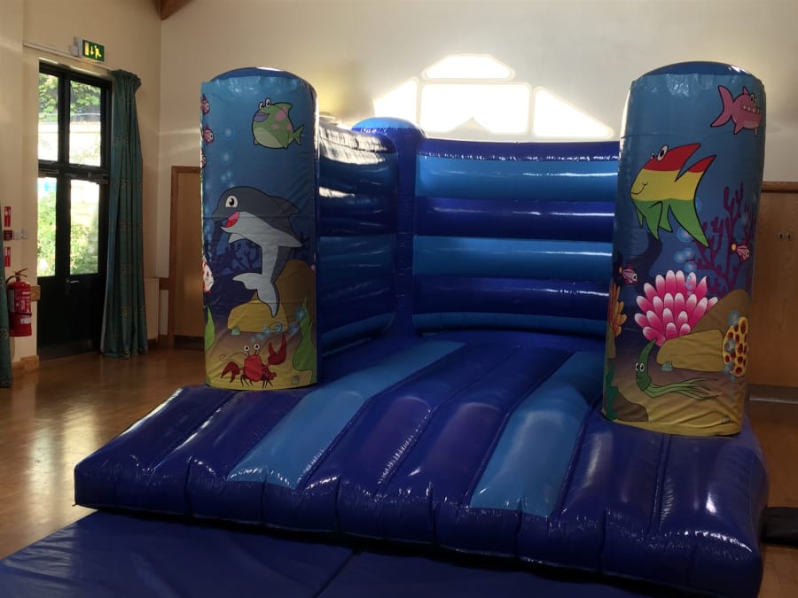 Under the sea bouncy castle hire in Bishops Cleeve, Stoke Orchard, Gotherington and surrounding local areas in Gloucestershire. Our 12ft by 15ft ocean themed bouncy castle that we have to hire is one of our more popular bouncy castle themes. Suited to budding octonauts and wannabe little mermaids this sea life bouncy castle will fit right into your 'under the sea' themed bouncy castle party. So why not get the party started and let your party guests explore the various aquatic sea creatures whilst bouncing on this fantastic sea life themed bouncy castle.