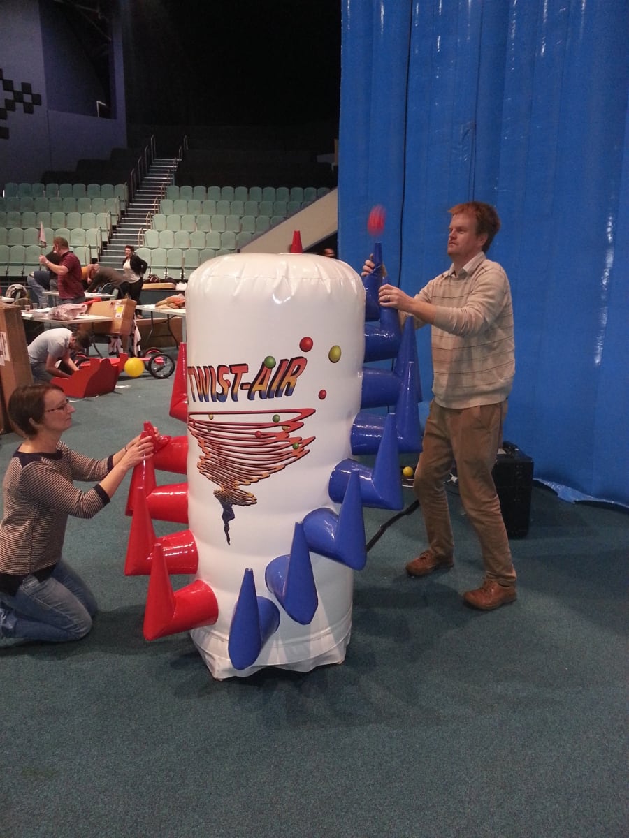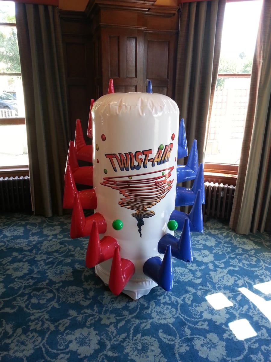 If space is limited then the twist air game only requires a 9ft by 9ft space, a flat level area and one main power supply. Suitable for adults and children this popular inflatable interactive game is a must have at your next indoor event.
