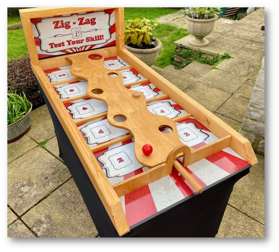 When you include the Retro Zig Zag Carnival Game as part of your company fun days and events in Cheltenham, Tewkesbury, Gloucester, the Cotswolds, or Gloucestershire, you're not just providing entertainment; you're creating memories. This game is perfect for fairs, family gatherings, corporate events, and more.