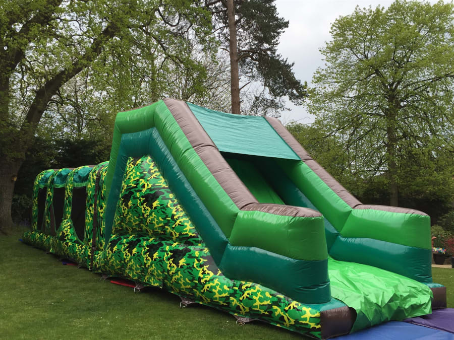 For all those adrenaline enthusiasts out there, prepare to battle your way through tunnels, biff bash pillars, criss cross obstacles, a massive mangle and up and over wedge slide on this fabulous camouflaged themed obstacle assault course that is available to hire from All about fun uk.com ~ the party and event hire company.