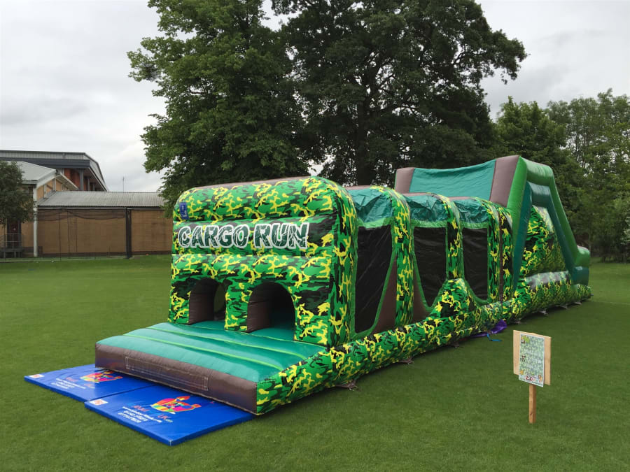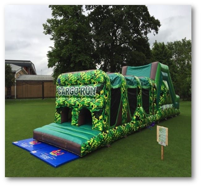 - The hire of the army themed cargo run obstacle course includes the delivery, set up and collection. A flat grassed area is required for all outside hires as well as double gated access. The cargo run can also be hired inside halls and venues.