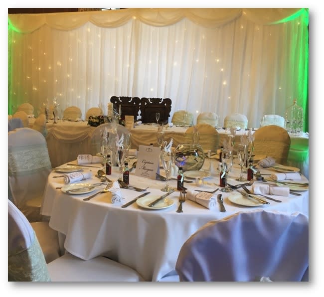 Please do also take a look at the twinkle light top table skirt for hire as well as the fairy light cake skirt also available to hire. Package discounts are also available when the white starlight back drop, starlight top table skirt and starlight cake table skirt are hired as a package, please do ask for further information?