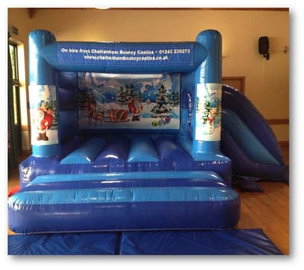 Christmas themed bouncy castle combi slide to hire in Cheltenham, Tewkesbury, Gloucester, Stroud and surrounding areas.
