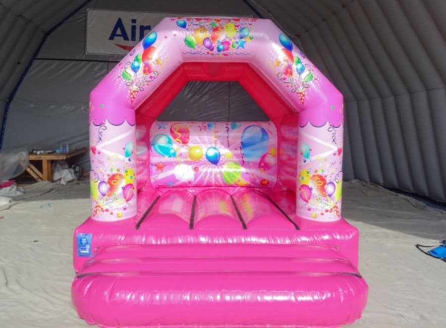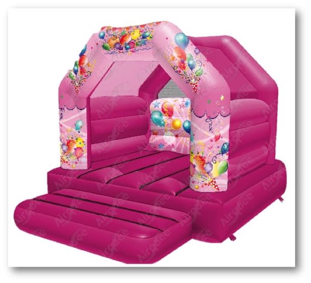 To find our more about hiring this delightful pink party themed bouncy castle then please do contact us or check availability and book online. As well as the 10ft by 12ft pink party themed bouncy castle with roof, we do also stock a slightly larger 12ft by 12ft blue party themed bouncy castle with roof for the same hire cost.........Please do ask for further details?