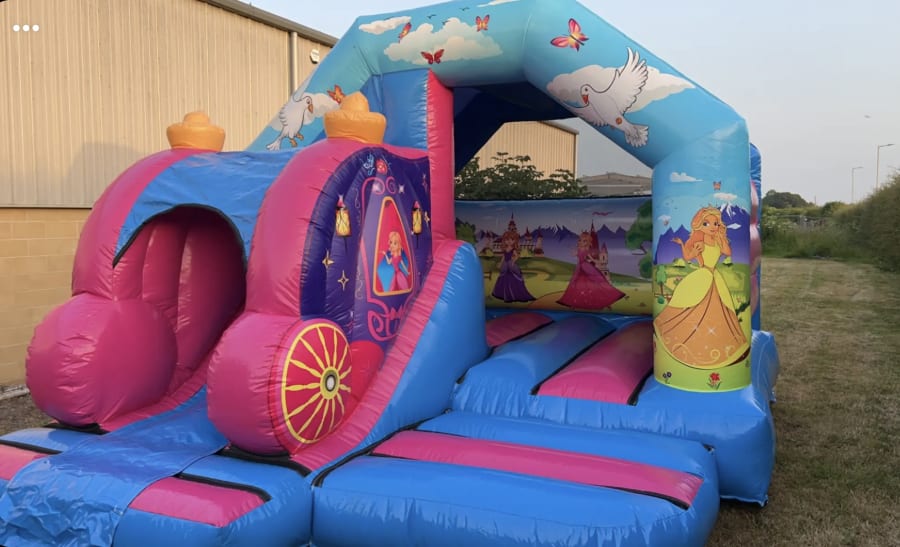 3D Princess Carriage Castle Combi slide available for hire today, Cheltenham, Gloucester, Tewkesbury and surrounding areas - call 07774416639 for further details.
