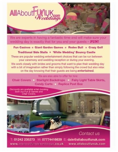 For further details please contact All About fun uk weddings on: