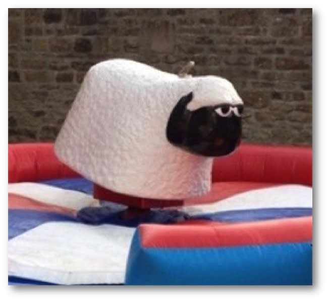 There will surely be lots of sheep innuendos flying around as a willing sheep rider takes on the challenge to ride the bucking rodeo sheep. The rodeo sheep is mechanically controlled by one of our in-house experienced sheep handlers at all time and if you fall off then you will safely land onto the inflatable bed below.