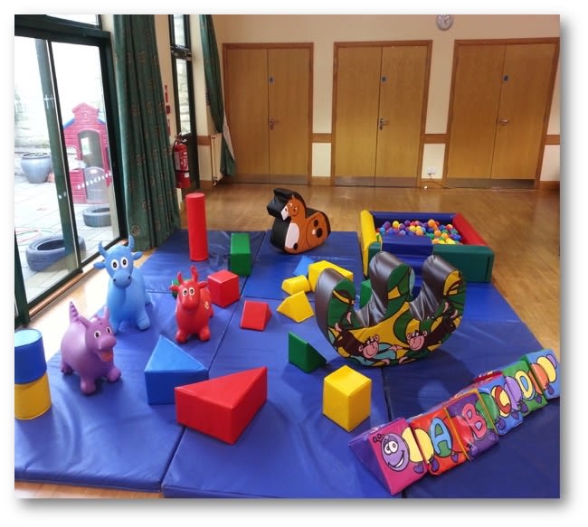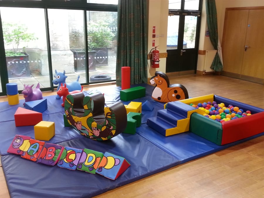 - Soft play matting covering a floor space of 12ft by 12ft.