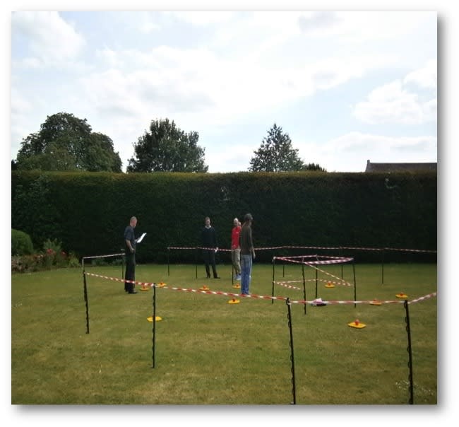 Sounds easy?..well first of all your team will need to create a code using a whistle and then a willing team member is blind folded. It is then up to the team to get their blind folded team member safety across the mine field course in the quickest time unharmed.