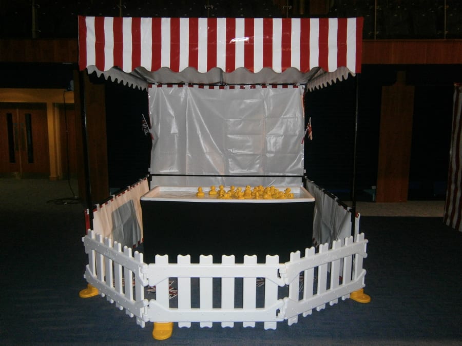 The hire of the hook a duck traditional side stall includes the delivery, set up and collection for you. The traditional hook a duck side stall can be set up outside as well as inside (height permitting). Safe conditions of use will also be explained to you on the day and risk assessments are also available upon request. If you would like a member of our staff to run the hook a duck side stall or any of our other traditional side stalls for hire then this is available at an additional hire cost. Please do contact us for further information? Prizes are also available at an additional cost too.