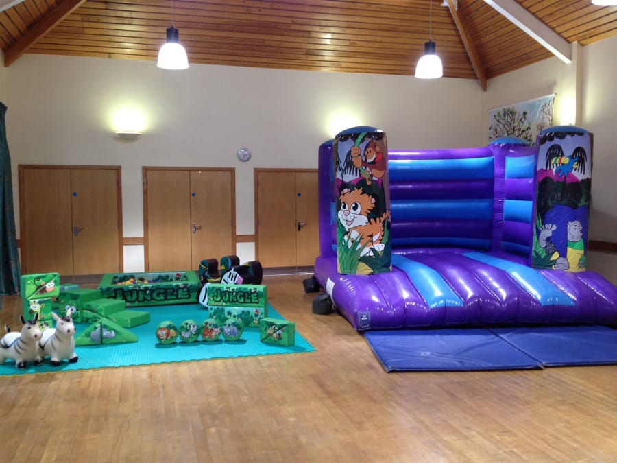 Jungle Soft Play with 12ft by 12ft Jungle Themed Bouncy Castle available to hire from Cheltenham Bouncy Castles, Gloucestershire.