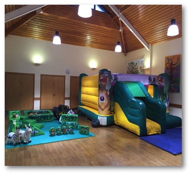 Hire the jungle soft play with a jungle themed castle combi slide as a soft play hire package at Cheltenham Bouncy Castles, Gloucestershire.