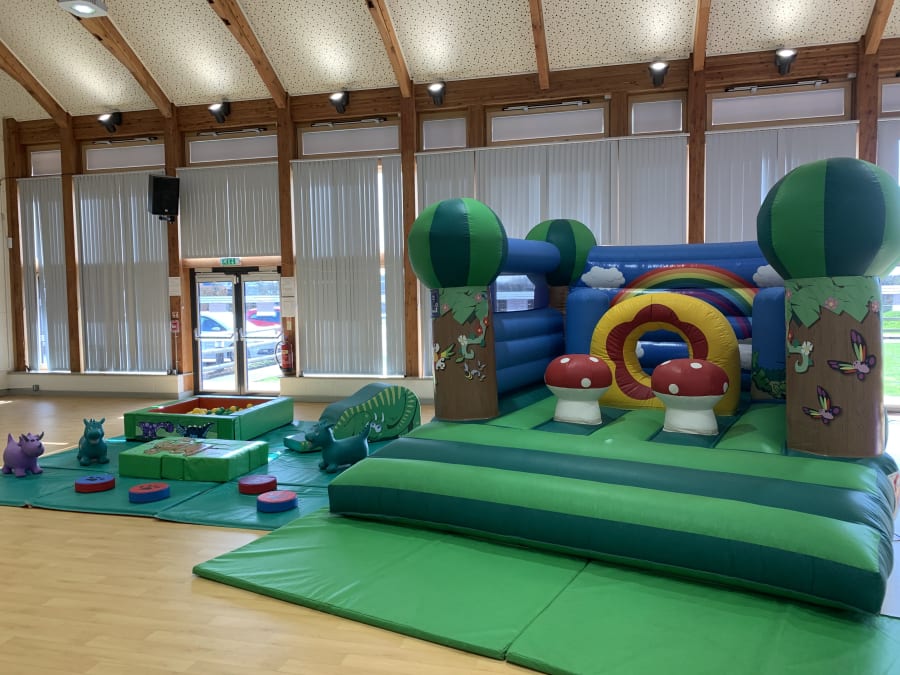 Let your wannabe dinosaur explorers have the most roartastic fun with this magic forest activity bouncy castle and dinosaur themed soft play party package. We can bring this dinosaur soft play and bouncy castle party package to you. Covering the Gloucestershire region including Cheltenham, Painswick, Cranham, Shurdington, Leckhampton, Charlton Kings and other local areas.