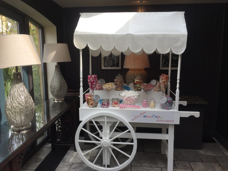 Take a look at this wedding games and sweet treat combo package that is available to hire at your wedding day celebration in the beautiful Gloucestershire countryside. Let your guests reminisce with the sweet treat favourites on offer with a fully stocked candy cart. Get the wedding day celebrations fully underway with outdoor lawn games and a white wedding day bouncy castle.