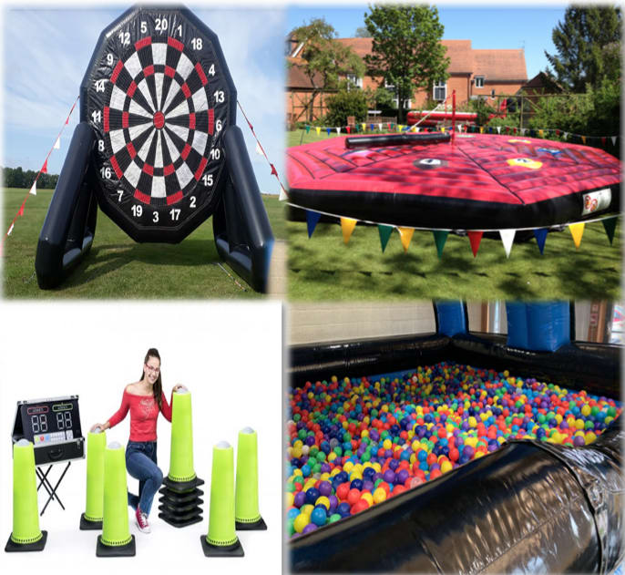 This games package has been put together especially for universities and new freshers in mind, as a way of new students coming together, often for the very first time breaking the ice and making for ever university friends. There is certainly something for everyone with this popular inflatable games package with the competitive eight player last man standing game to test and challenge skills and luck. A massive inflatable ball pit designed especially for adults and teenagers is the next addition to this package which is always a crowd popular pleaser. Then there is an over sized velcro football darts to bring a bit of extra sporting competition to any event and finally the interactive sports cones are just the perfect added addition to this package.